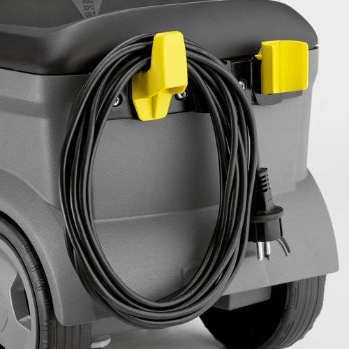 La lava-aspiradora Puzzi 10/1 realiza una limpieza profunda o de mantenimiento de superficies alfombradas de tamaño pequeño a mediano, así como de tapicerías. Los accesorios de diseño modular se pueden guardar perfectamente en el equipo, ahorrando espacio durante su transporte o almacenaje. El asa de transporte ofrece un soporte para el tubo de prolongación.