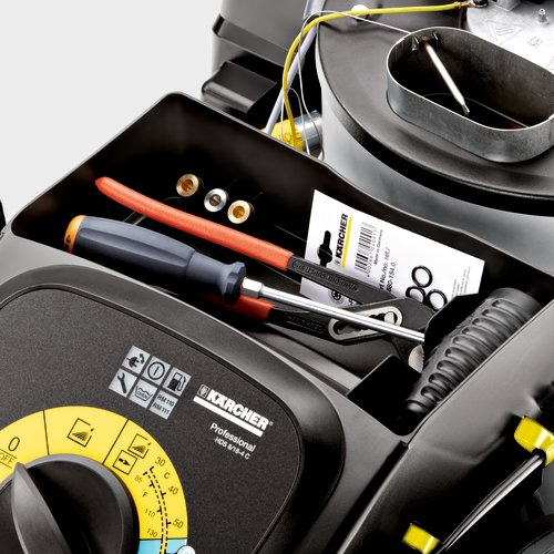 cPotente limpiadora de alta presión con agua caliente de la gama compacta HDS de Kärcher: gracias al exclusivo modo eco!efficiency, la HDS 6/14 C aúna un funcionamiento rentable y respetuoso con el medioambiente, con un extraordinario confort para el usuario. Mientras que la pistola de alta presión EASY!Force aprovecha la fuerza de retroceso del chorro a alta presión para neutralizar la fuerza de retención, los cierres rápidos EASY!Lock posibilitan un manejo cinco veces más rápido en comparación con las uniones roscadas convencionales sin perder robustez ni longevidad. Asimismo, manejo sin esfuerzo gracias al manejo intuitivo con un solo botón que incorpora el equipo. Las ruedas de gran tamaño y el rodillo de dirección garantizan una excelente movilidad, mientras que el resistente chasis con depósitos integrados para combustible y detergente domina sin problemas incluso las aplicaciones más exigentes. Prácticos compartimentos para accesorios, boquillas, etc. completan en elaborado concepto de este equipo de una fase.