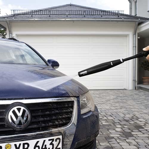 La hidrolavadora K 4 de Kärcher es la solución ideal para la limpieza ocasional de suciedad moderada del hogar (p. ej. en vehículos compactos, bicicletas, herramientas y muebles del jardín).